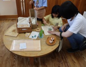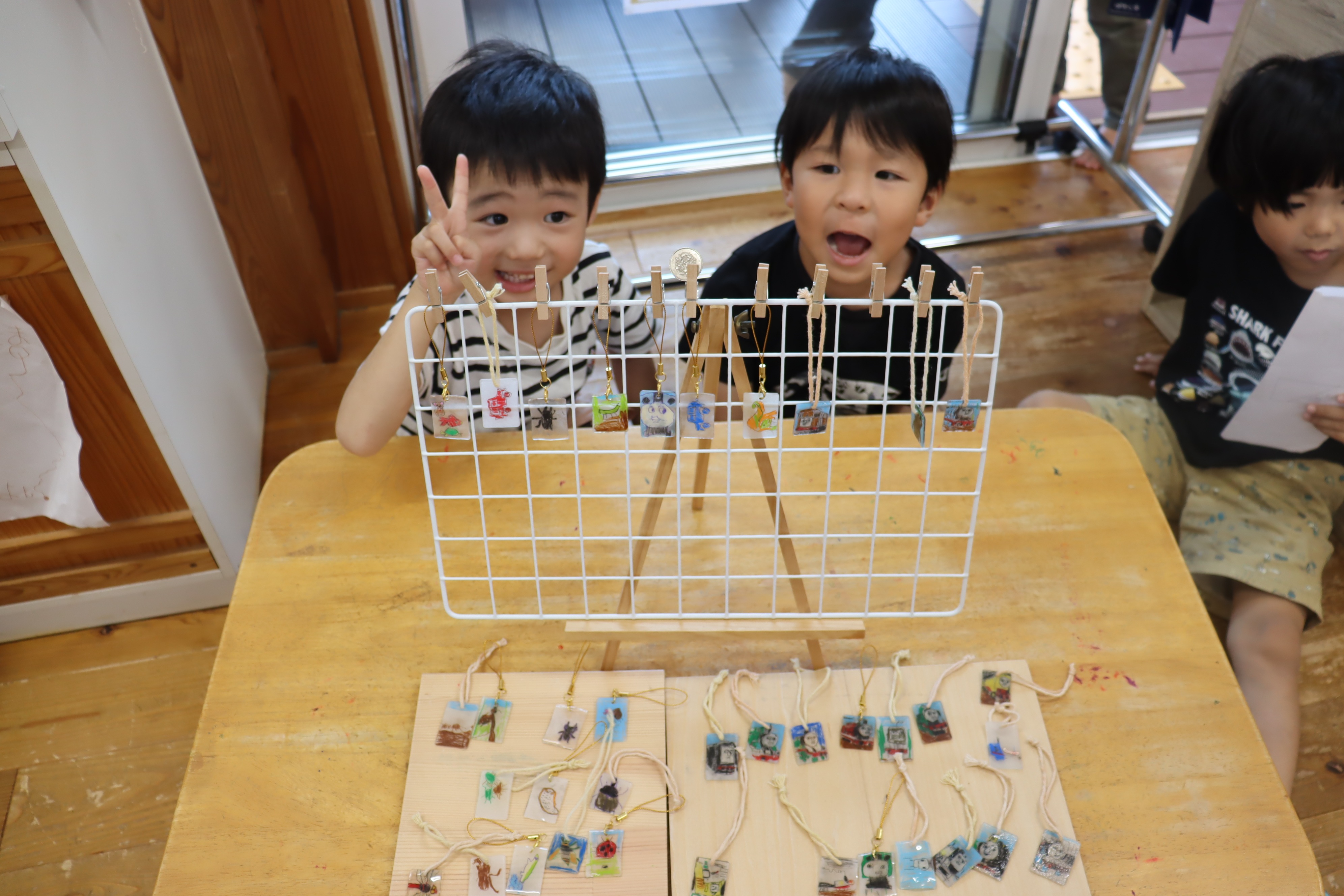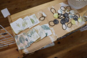 今日は5歳児さんが当日開くお店のプレオープン!こんなことしたいこれを売りたい!と思いを形にして日々コツコツとためてきました。ペットボトルのキャップでこんなこともできる、植物で染物や叩き染もできるねと発見がいっぱい!自分たちで、できることがどんどん増えました。当日は染物エプロン(自分たちで手作りしましたよ)でお客様をお迎えします。