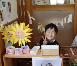 特に5歳児さんは自分たちのお店で売り上げたお金で以前、遊びでゴミ収集車を作った時に集めたゴミはどこへ行くのか、そのゴミをどうするのかという疑問が出てきたのでそれを解決する為に清掃工場へ行く交通費に使います。新たな広がりにドキドキワクワクです。