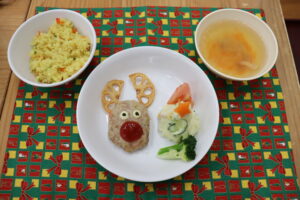 今日のお昼ご飯です。クリスマスメニューでしたよ。子どもたちも大喜びでした❣